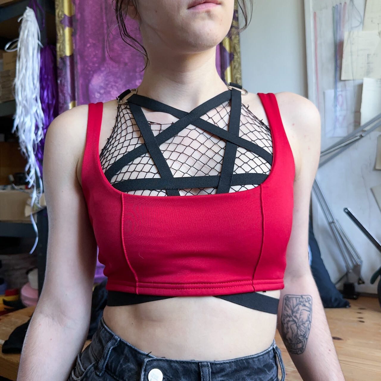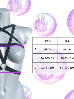 ♚ Czarna uprząż pentagram na klatkę piersiową♚