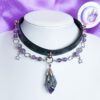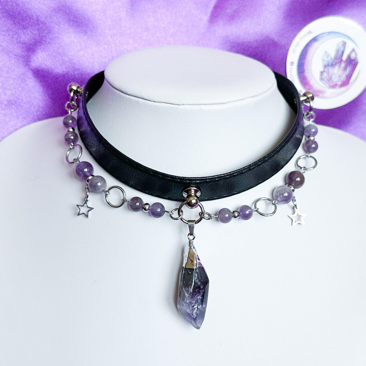 ☽ Fairycore obróżka z ametystem 3 – czarna obróżka z ekoskóry zawieszką z kamienia naturalnego ☾
