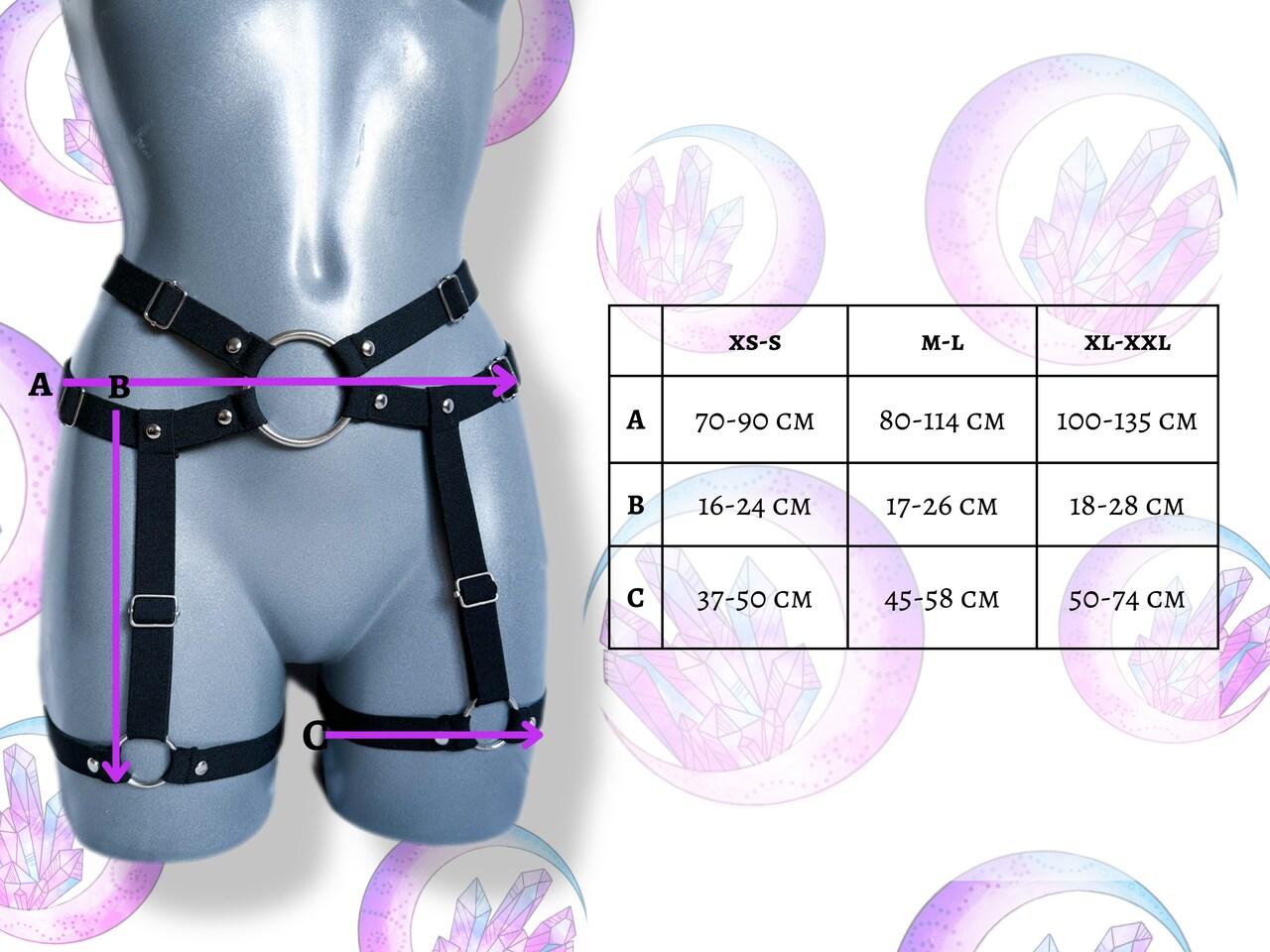 Każdy pas posiada regulację obwodu talii i bioder oraz ud. Ze względu na ręczny charakter produkcji podane wymiary mogą się różnić o około 2 cm.